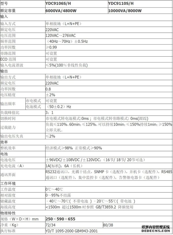 · 雙變換在線式設計,使UPS的輸出為頻率跟蹤、鎖相穩壓、濾除雜訊、不受電網波動干擾的純凈正弦波電源,為負載提供更全面保護。