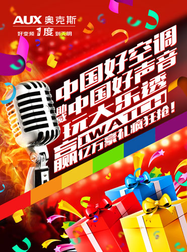 當前隨著第四季《中國好聲音》火熱開播,這在掀起一股全民娛樂的高潮之際,由空調巨頭奧克斯打響的好聲音大樂透活動也如期打響,開創(chuàng)了一場空調業(yè)跨界娛樂營銷的先河,更讓消費者持續(xù)感受到來自空調企業(yè)年輕化、時尚化、品質化的形象。