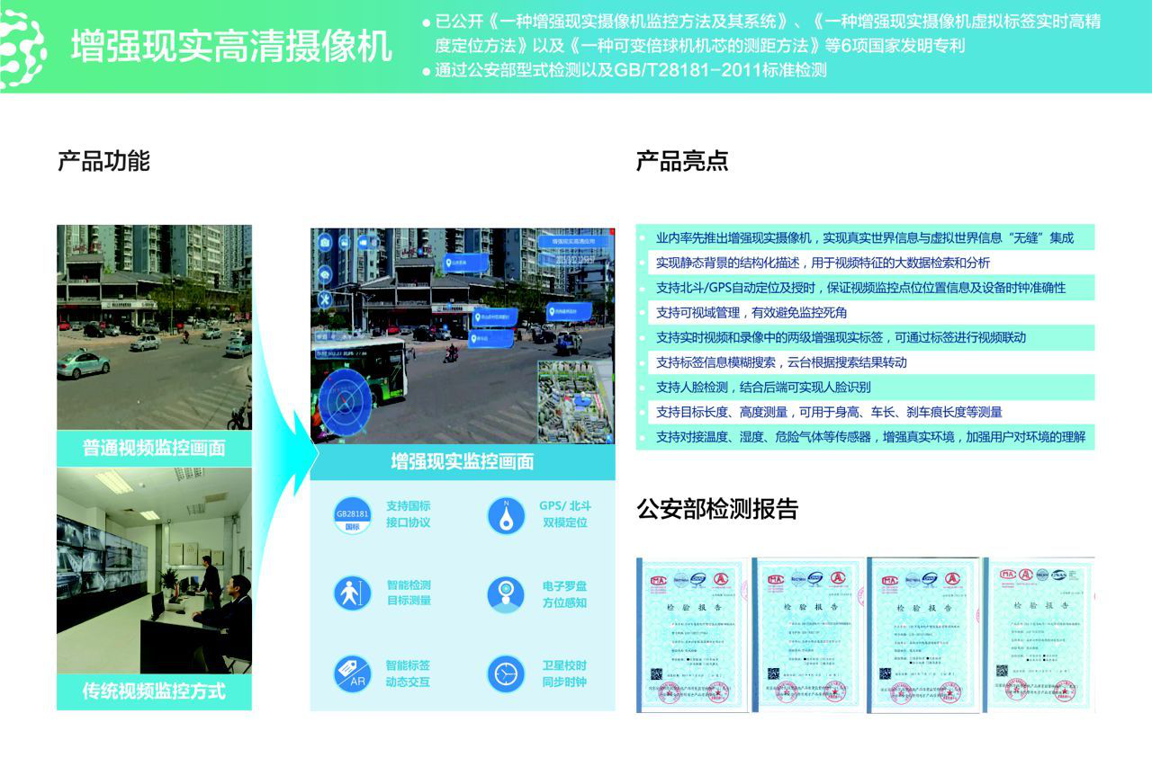 高新興走在安防行業前沿,堅持自主研發,在業內率先提出并實現的增強現實高清監控技術。目前已制定增強現實國家標準,并且通過公安部型式檢測以及GB/T28181-2011標準檢測。高新興研發中心產品市場部經理黃仝宇表示,高新興將在2015深圳安博會隆重推出4K超高清視頻結構化增強現實球機,可讓參觀者更直觀看世界。從增強現實高清監控技術層面上講,實現將實時視頻的“現實”與虛擬的“增強”信息結合起來,使監控人員在實時監控畫面上能夠直觀了解目標信息,可讓背景信息結構化,這種背景信息轉化為文本信息,可幫助監控人員快速根據背景信息進行搜索、快速定位,在實時監控畫面中添加攝像機的經緯度、方位角,標注目標的名稱、地址、聯系方式等信息,幫助監控人員了解監控畫面中的視頻信息及時有效地處理視頻畫面中捕捉到的異常情況、突發事件,同時結合了智能分析技術,實現了人臉檢測、目標測量的功能,可以將目標人的人臉部分圖像進行提取并結合人臉對比識別系統進行目標識別,同時對目標人進行長度、高度的測量,可在公安實戰中起到重大的作用。