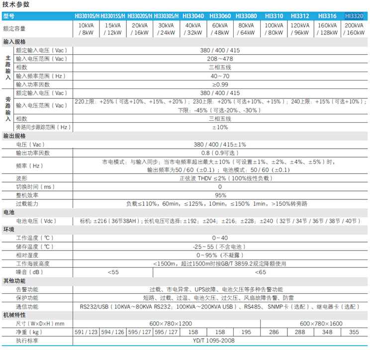 ·寬廣的輸入電壓范圍達208V~480V,避免頻繁地切換至電池供電,適應于電力環境惡劣的地區。